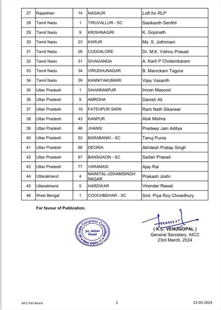 कांग्रेस ने चौथी लिस्ट में 46 प्रत्याशियों के नाम घोषित किए हैं. नैनीताल लोकसभा सीट से प्रकाश जोशी को टिकट दिया है. जबकि हरिद्वार सीट से हरीश रावत के बेटे वीरेंद्र रावत को प्रत्याशी बनाया है.