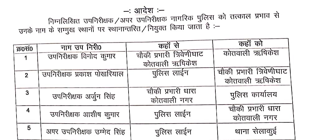 पुलिस महकमे से बड़ी खबर सामने आ रही है। एसएसपी अजय सिंह ने कई उप निरीक्षकों को इधर से उधर किया है। सोमवार को इस सम्बन्ध में आदेश भी जारी कर दिए गए हैं।